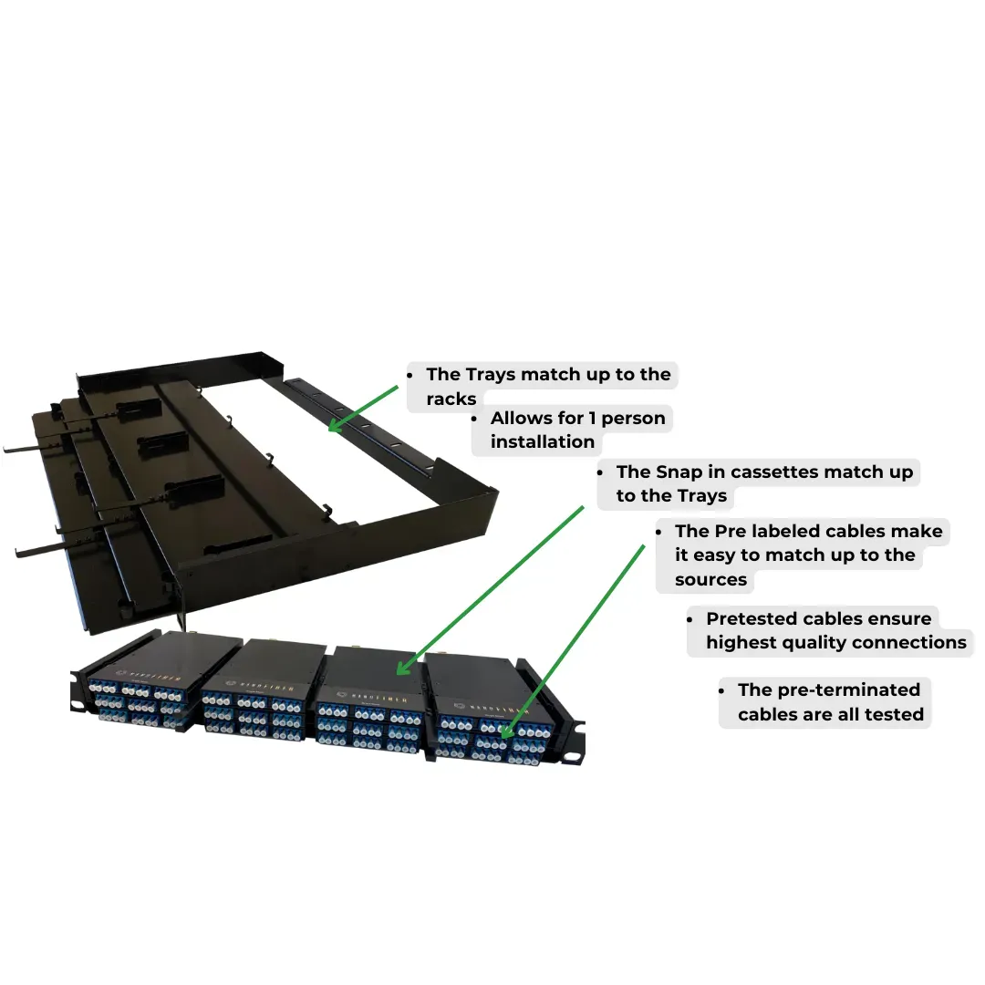 Our 12-color plastic cassettes and matching cables simplify inventory, enhance rack organization, and optimize performance for data centers, supercomputers, and colocation facilities.